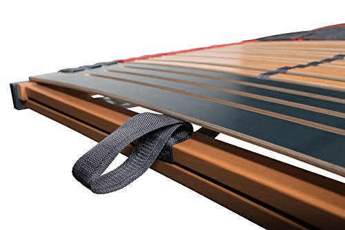 KOMFORT: 44 mehrfach verleimte, flexible Federholzleisten mit Hilfe von geringem Leistenabstand ersparen die Matratzenunterlage weiterhin umsorgen gute Belüftung, dämpfend federnde Triokautschukkappen, die holmüberdeckend sind (keine Lücke im Ehebett) umsorgen Option Federung