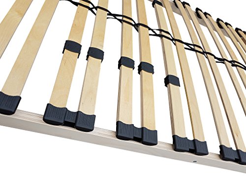 Hochwertiger Lattenrost mit individuell im Härtegrad einstellbarer Beckenzone zur Entlastung des Lendenbereichs.