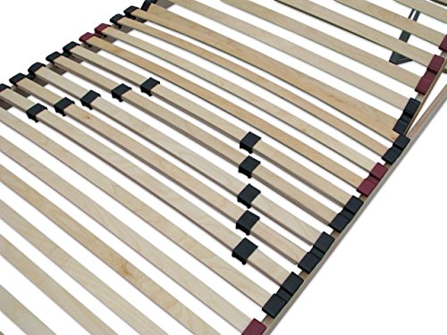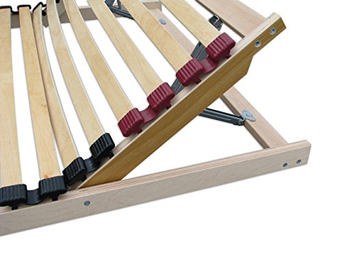 Hochwertiger Lattenrost mit individuell im Härtegrad einstellbarer Beckenzone zur Entlastung des Lendenbereichs.