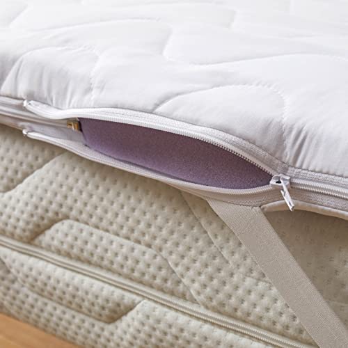 ENTLASTET DIE WIRBELSÄULE – Die Visko-Topper sind mit einer Wellensteppung versehen und sie sind Abseitsposition feist und wattiert für hohen Schlafkomfort. Die Kaltschaum Matratzenauflage schütz nicht dessen ungeachtet Ihre Matratze sondern fördert die Durchblutung und entspannt die Nackenmuskulatur.