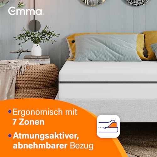 Emma One Matratze, Kaltschaummatratze, 140×200 cm, H2 Härtegrad Mittelhart, 18 cm Höhe, 3-Zonen-Stützung, Atmungsaktiver & Waschbarer Bezug