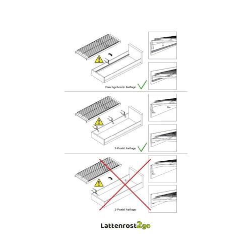 ‼ WICHTIG: Ihr Bett benötigt auf beiden Längsseiten eine durchgehende Auflage für den Lattenrost bzw. mind. eine 3-Punkt Auflage (Kopf, Mitte Fuß).