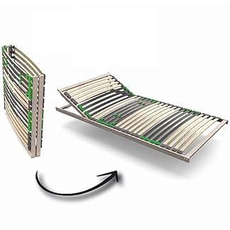 Lattenrost 80×200 cm FlexSTAR, Kopfteil VERSTELLBAR, Lattenrahmen mit 28 Leisten in 7 Zonen Härtegrad stufenlos REGULIERBAR, FERTIG MONTIERT geliefert freiliegende Kautschukkappen, aus Buche und Birke