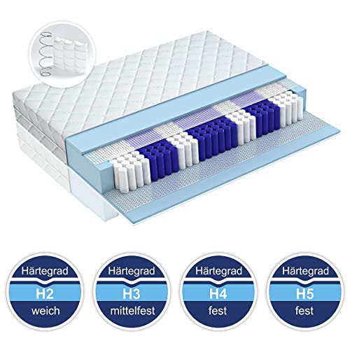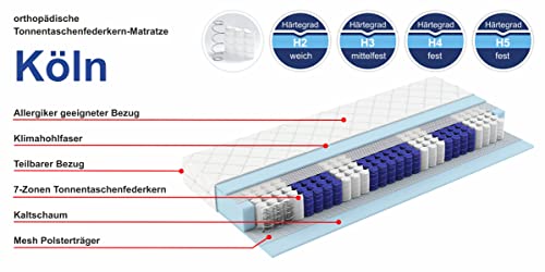 Komfort – Der Tonnentaschen-Federkern ist in 7 Zonen aufgeteilt und beidseitig angesichts eine hohe Schaumstoffschicht gepolstert. So eignet sich die Federkernmatratze perfekt sondern leer Schlaftypen.