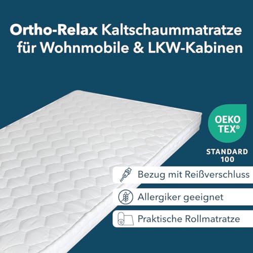 Ortho-Relax Kaltschaummatratze 90x200cm, 10cm hoch, Rollmatratze für Wohnwagen und Wohnmobile, LKW-Kabinen, Ferienwohnungen und Gästebett, Gästematratze aus Schaumstoff, hergestellt in Italien